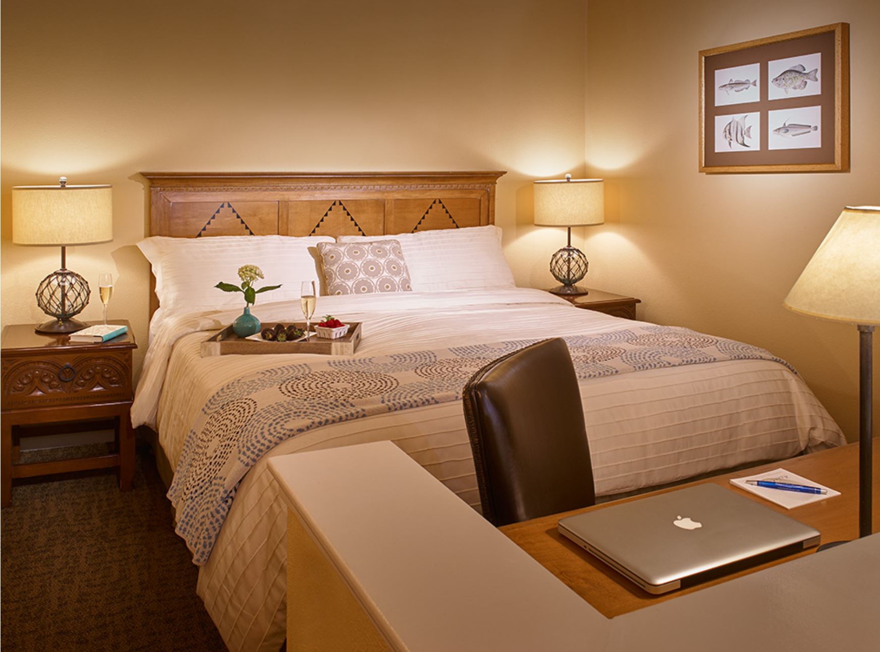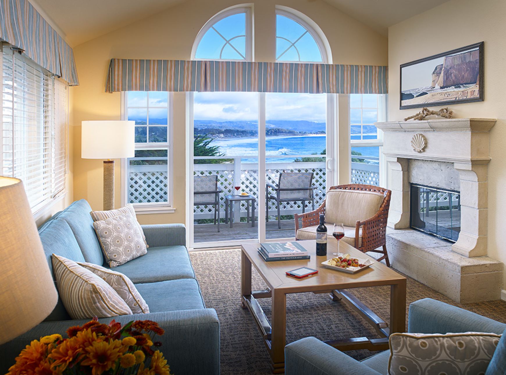 Each of the junior suites in this luxury boutique hotel is designed to take advantage of the views of the beautiful Pacific Ocean and Santa Cruz Mountains from both the living room and bedroom areas. Color schemes were inspired by the landscape just steps outside your room. Materials and woods were thoughtfully selected to be reminiscent of a seaside retreat.