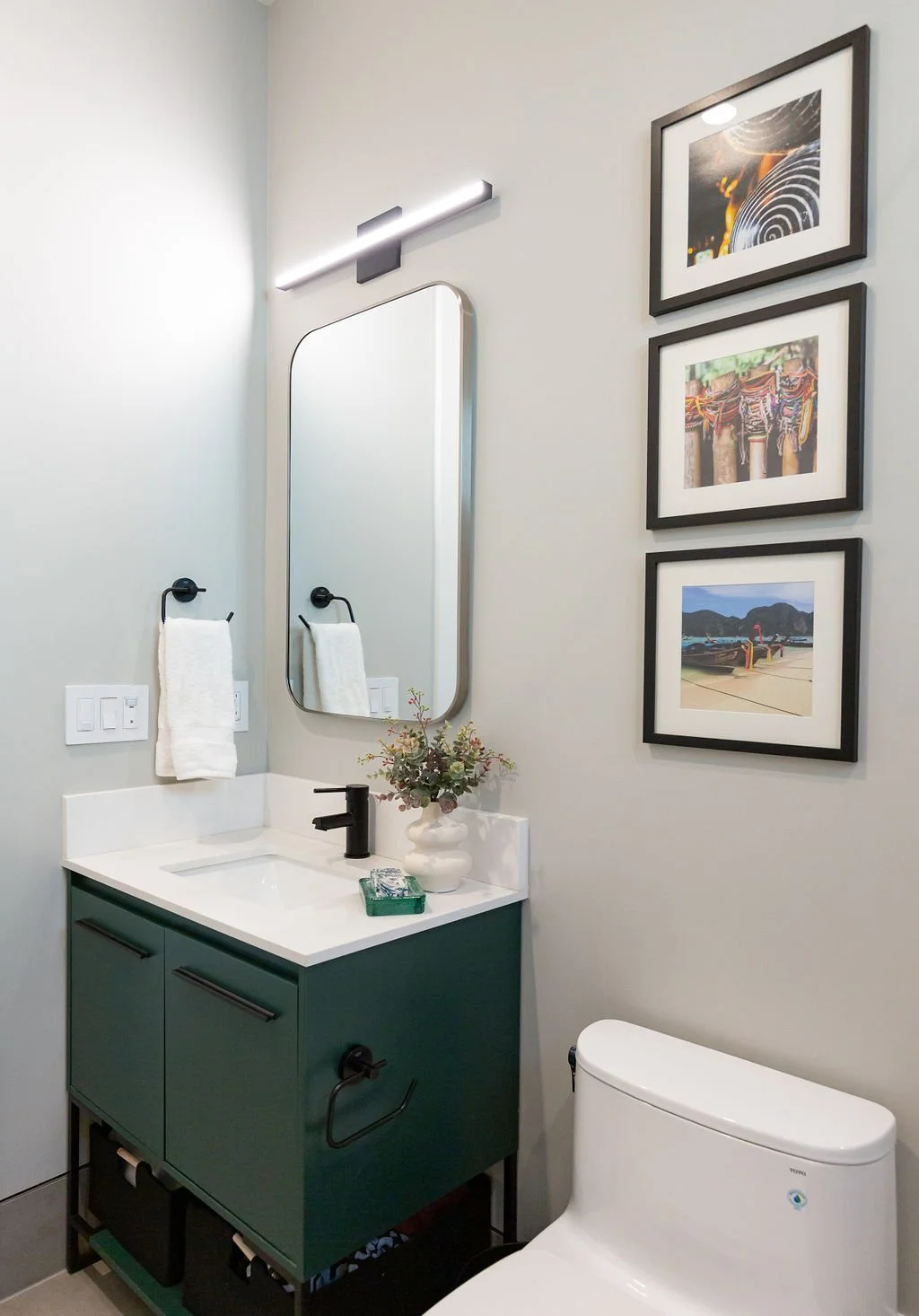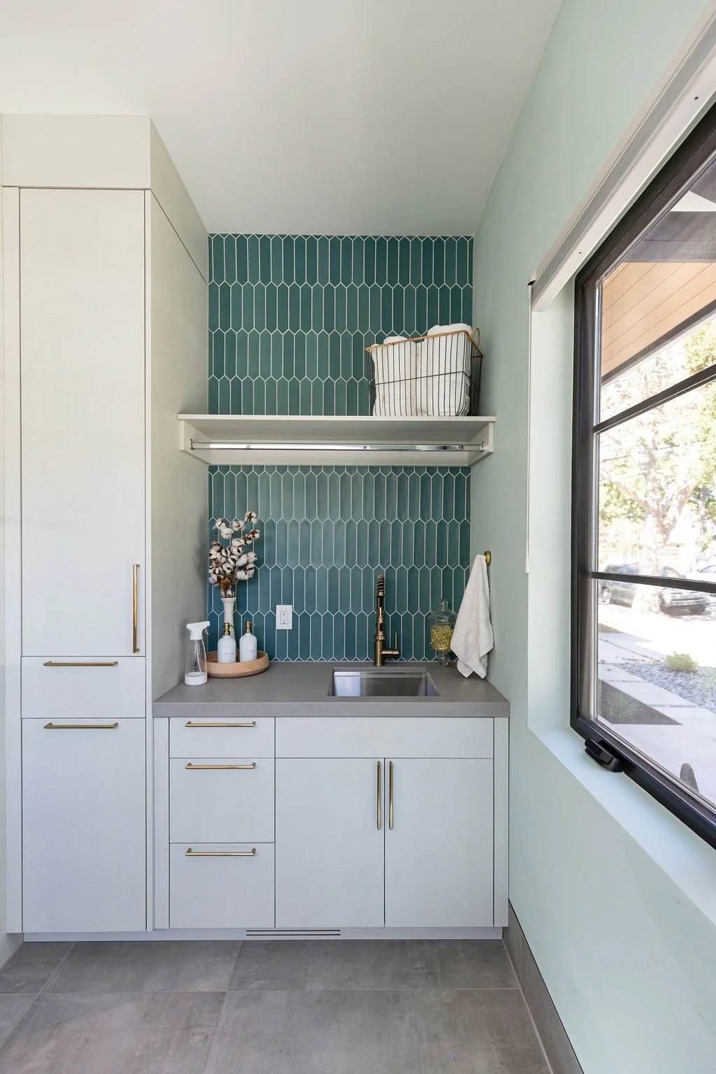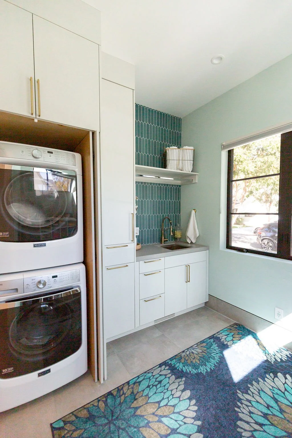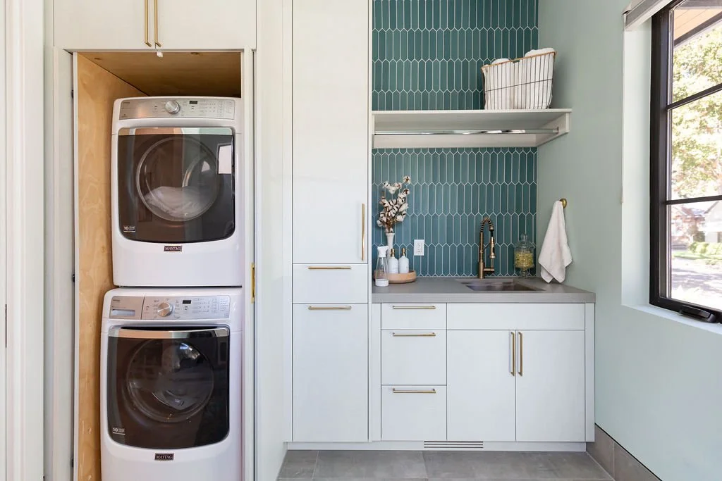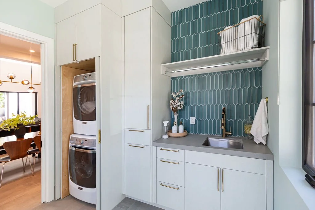 Vibrant pops of color, like emerald green and turquoise, brighten the kids' bath and laundry room, showcasing the family’s playful spirit. This home masterfully blends modern design with functional living, perfect for both relaxation and entertaining.